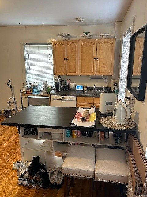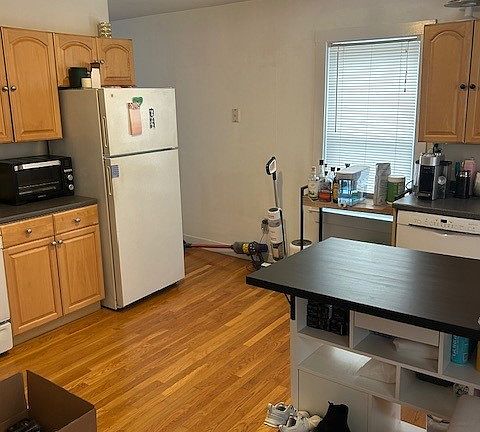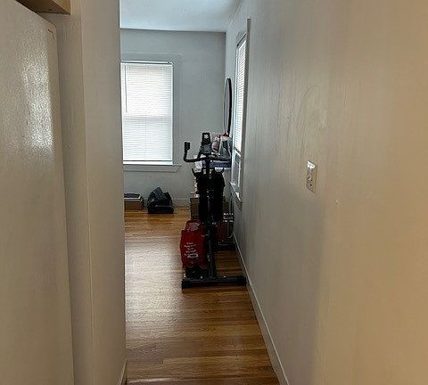 Freshly painted 1 bedroom apartment in walking distance to downtown Main/Moody street and public transportation. Updated eat in Kitchen, hardwood floors, dishwasher/disposal off street parking for 1 car, coin op laundry onsite. Available 12/15 or 1/1/26. First and last months rent required to move in. Utilities not included, gas heat.