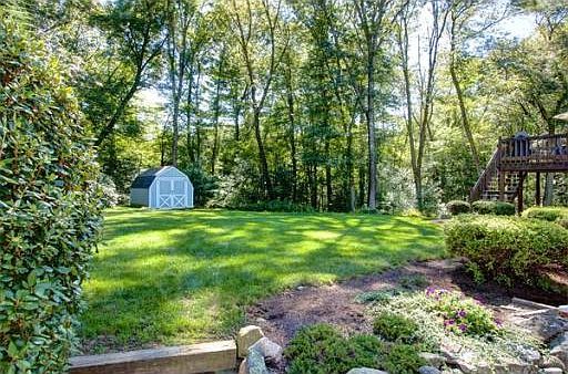 Handsome residence with 5 bedrooms, 2.5 baths, 2 fireplaces nestled on ***2 professionally landscaped lots*** in a very desirable cul de sac neighborhood and adjacent to Strawberry Hill trails. Peace and tranquility like no other. Two levels of living; great for a multigenerational family. Generous size living room, elegant dining room overlooking backyard, Huge family room perfect for Patriot football games! Pride in ownership shines thru with no detail spared with upgrades: roof, windows, kitchen, baths, electric, Trek deck, central air, furnace w high efficiency burner (ONLY $1100 ANNUAL HEATING COST!), fencing, plumbing and fixtures. Exceptional backyard living in manicured lot, perfect for cocktail parties and large family gatherings. This home feels like new with everything updated for you to move in and enjoy! Easy access to major routes in a great town full of activities. Boston.com ranks HOLLISTON 18th on 2013 Best Schools List.