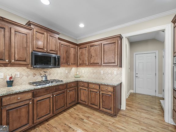 We've just made a price adjustment on this beautiful 5-bedroom, 4-bath home in Grayson-now offered at $525,000. This craftsman ranch sits on a spacious corner lot and comes with energy-efficient upgrades, including a new hot water heater and 2 HVAC systems. The home features stacked stone accents, a two-car side-facing garage with epoxy floors, and professional landscaping with irrigation. Architectural lighting adds great curb appeal in the evenings. The neighborhood is convenient to grocery stores, shopping, dining, health care, and well-rated schools. You'll also have easy access to Tribble Mill and Bay Creek Parks. Inside, the covered front porch leads to a detailed foyer with tray ceilings, a formal dining room, and an office with plantation shutters and transom windows. The open family room has rich hardwoods, crown molding, coffered ceilings, and a stacked stone fireplace. The kitchen is equipped with granite countertops, stainless steel appliances, a breakfast bar, wall oven, and a keeping room that flows right out to the patio-perfect for indoor/outdoor living. The main-level primary suite includes a spa-like bathroom with double vanity, a travertine jetted tub, and walk-in shower. Three more bedrooms and two full baths are also on the main floor. Upstairs, there's a large en-suite bonus room that can be used as a guest space, playroom, media room, or office. The backyard is private with a patio and built-in gas line, ready for your dream outdoor cooking setup. The tree-lined view makes it ideal for relaxing or entertaining. This home also comes with a 1-year Home Warranty and is MOVE-IN READY just in time for the holidays. Don't miss this opportunity to own a thoughtfully designed home in a great location. An outdoor storage room with double doors, positioned at the back right side of the home, provides even more space for your needs."