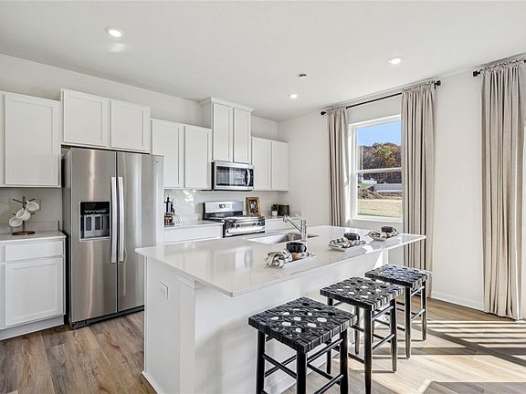 The Deerfield is a meticulously crafted two-story home offering four bedrooms and two-and-a-half baths. The kitchen is equipped with a walk-in pantry and a versatile island ideal for food prep and seating, making it perfect for entertaining. The kitchen seamlessly flows into the open-concept dining area and great room, creating a spacious and inviting environment. All four bedrooms are conveniently located upstairs, along with the laundry room. The primary suite features an on-suite bathroom and a generous walk-in closet. This home also comes with D.R. Horton's Home is Connected® package; a leading suite of smart home products that keeps homeowners connected to what matters most. This technology allows for remote monitoring and control, whether you're on the couch or across the globe.