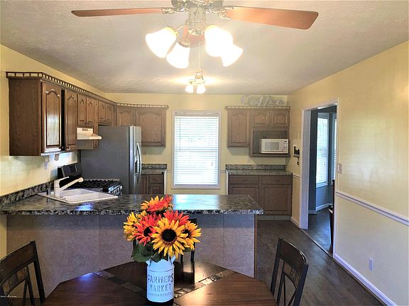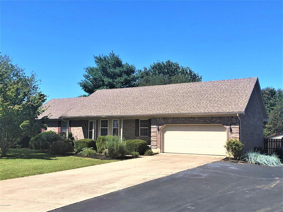 Welcome to 157 Travis Road in Floyds Fork Estates. MOTIVATED SELLER! Beautiful brick ranch w/nicely manicured landscape and curb appeal, on a 0.68-acre lot. This home offers a 2-car attached garage w/keyless entry pad. Extra-large driveway extends to the backyard. From the covered front porch, enter through the front door into the great room that boasts a vaulted ceiling, fireplace is wood and gas burning, as well as an oak spiral staircase that leads to the basement. (NO WORRIES - There is also a regular staircase to basement) Updates of this home include, HVAC, furnace, water heater, laminate flooring in the great room, bedrooms and down the hallway, bathrooms and some fresh paint. Master bedroom has its own bathroom, and there are two additional roomy bedrooms. Mud room/ laundry on first floor too!The light flows into this home with two bay windows, one in the great room and one in the kitchen. There is a ceiling fan in the great room, kitchen and all of the bedrooms. The spacious kitchen has newer stainless appliances, ample cabinetry and a dining area. The laundry room is located on the 1st floor. Basement of this home is finished and has a large media room/family room/recreation room, as well as a full bathroom. Bonus room in the basement is currently being used as a bedroom. It could also be used as an office/multi-purpose room. There is separate area in the basement that could be used as a storm shelter/storage area. When you exit the home through the back door from the kitchen onto the multi-level deck, you can relax and enjoy views of this large lot that has several mature trees. There is a 1219 sqft metal outbuilding, equipped with 3-inch thick spray foam insulation in the back section of the building with 100-amp electric and its own electrical box. There is also an additional 50-amp plug that is RV ready in the front part of the metal building. This building could be utilized as a workshop, a place to park cars/trucks/recreational vehicles, or it could be used for additional storage space. There is also a freshly painted 12 x 16 storage barn. Don't miss your opportunity to view this lovely home. Call today for your private showing, before it's gone!