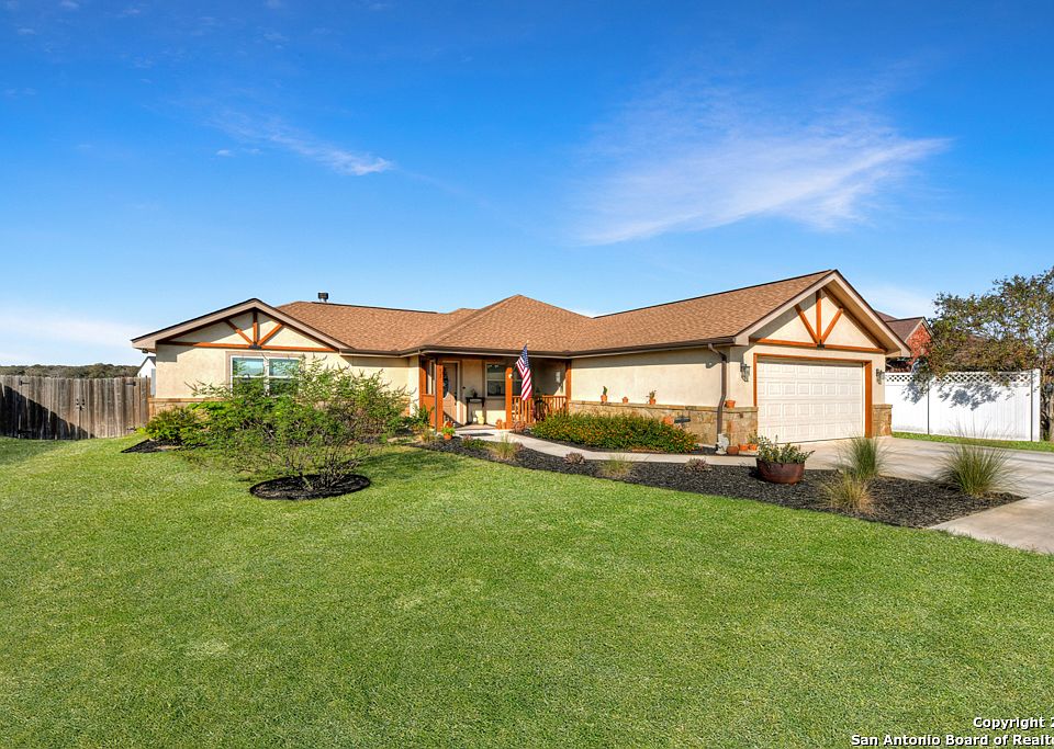 Come watch the beautiful sunsets in the countryside! Wonderful rock and stucco home with 3 bedrooms and 3 baths! Two living areas set up for ease of multi-generational living. Great backyard for relaxing with covered patio, nice landscaping and above ground pool with deck. Tile throughout home, neutral colors, and high ceilings. Open floor plan and two eating areas make this home great for entertaining. Extra wide driveway. Acclaimed La Vernia schools, and easy commute to San Antonio. Come see what country living feels like!