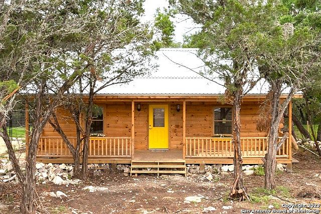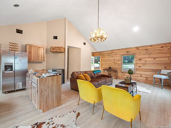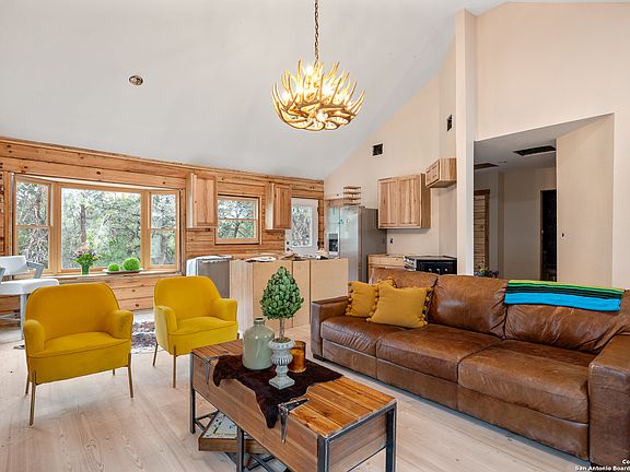 Beautiful new construction LOG CABIN located in the Cypress Cove Subdivision just a few blocks to Canyon Lake. Wide open living, kitchen, and dining area with soring ceilings. Beautiful antler chandelier. Hickory cabinets with white quartz countertop. Solid wood interior doors. Amazing hill country views with no back neighbors. Spacious back deck. After a hard day at the lake or river, come unwind in this comfy cabin. Watch the deer just right outside your widow.