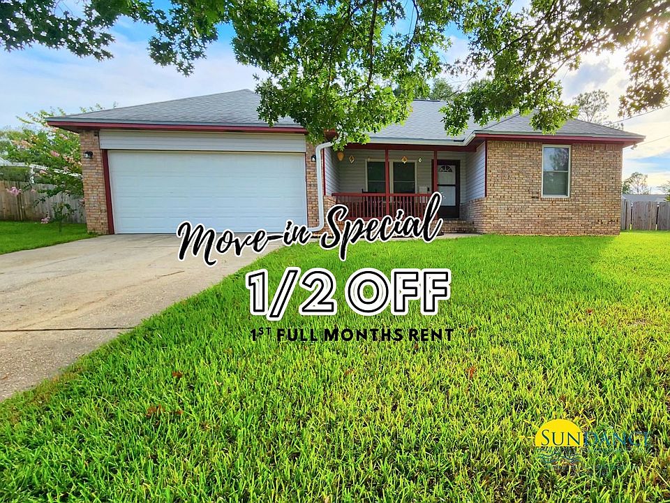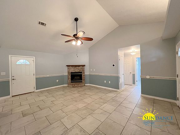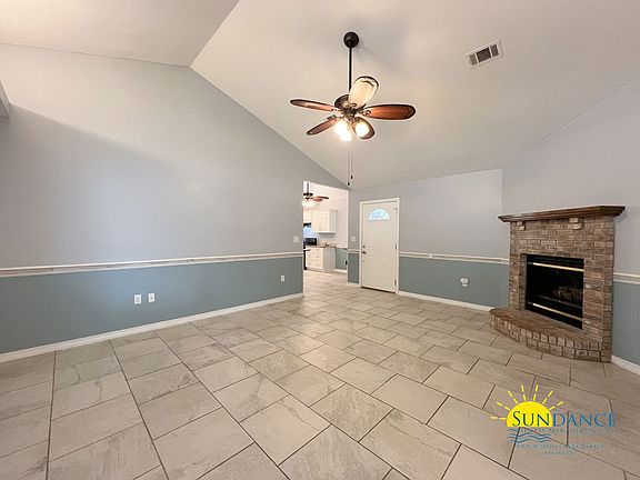 Located in South Crestview, this charming 3-bedroom, 2-bathroom home is just 40 minutes from the stunning beaches of the Emerald Coast and conveniently close to all area military bases. This must-see home features a 2-car garage and driveway parking. Step inside to a spacious living room with vaulted ceilings, tile flooring throughout, and a cozy gas fireplace. The split-bedroom floor plan offers added privacy for each room, making it ideal for families or roommates. The kitchen is a true chef's delight, complete with modern appliances, granite countertops, and ample cabinet space. The roomy primary suite is a dream, featuring a luxurious jacuzzi tubperfect for relaxing after a long day. Two additional good sized bedrooms and another full bathroom complete the interior. For added convenience, washer and dryer hookups are located in the garage.