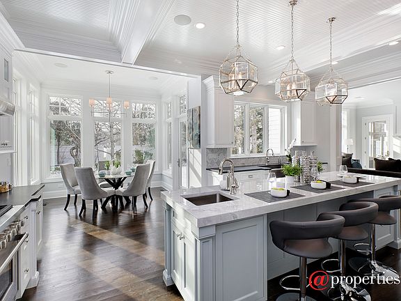 Magnificent Nantucket style home~approx 8400 sq ft of finished space. Stone & shingle exterior with copper downspouts situated on a .5 acre lot in a desirable location. Sprawling floor plan, high ceilings, over sized moldings, custom millwork/woodwork, dramatic 2-story foyer with 20 ft. ceilings, a kitchen straight our of Architectural Digest, front and rear porches. 6 bedrooms, 6.2 baths, luxurious master suite with spa-like bath and 5 wood burning fireplaces with gas starters. Expansive Lower Level includes media room, exercise room, refrigerated custom wine cellar/bar and 6th bedroom/bathroom. Incredible attention to detail.