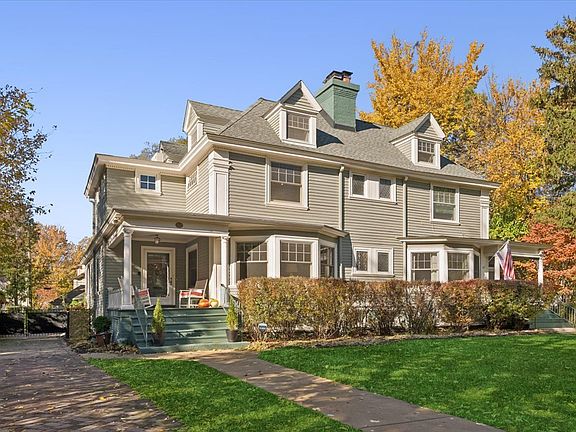Beautifully updated 1896 Myron Hunt-designed double house, perfectly situated in one of Evanston's most desirable locations. Offering approximately 3,500 sq ft above grade plus an additional 1,000 sq ft walkout finished basement, this historic home blends architectural charm with modern comfort. Set on an expansive 70x165 lot, the property features stunning landscaped gardens, a patio with pergola, brick paver driveway, raised garden beds, new perimeter fence, and a detached 2-car garage-a perfect outdoor retreat for entertaining or relaxing. A gracious front porch leads to a welcoming foyer and a classic floor plan filled with natural light. The living room showcases large windows, custom sisal carpet, built-in bookcases, and a gas fireplace (new liner and firebox). The inviting family room addition offers a second fireplace, built-in bookcases and desk, and radiant heated floors, creating a warm, open-concept space for everyday living. The fully renovated kitchen is a chef's dream, featuring radiant heated floors, quartzite counters and backsplash, exquisite tilework, custom cabinets, and a Bertazzoni induction range. Upstairs, the second floor includes three bedrooms, two baths (both with radiant heated floors), and a convenient laundry closet. The primary suite offers custom closets and recessed lighting, plus a stylishly renovated primary bathroom. The third floor adds exceptional versatility with two additional bedrooms-each with semi-custom built-ins, mini-split systems, and an updated full bath featuring a newer shower, vanity, and door. The finished basement includes a family room, office/den/gym, full bath, second laundry room, and a large storage closet. Additional highlights include new Marvin windows on the first and second floors (except one middle bedroom and the hall bath), and new windows on the third floor. Enjoy a prime location-just four blocks from downtown Evanston-with easy access to Metra, Purple Line, restaurants, cafes, boutiques, gyms, and the vibrant cultural scene of the North Shore. For outdoor enthusiasts, the lakefront and running/bike path are just minutes away. Top-rated Evanston schools-from elementary through high school-are all within a few blocks. A perfect blend of history, elegance, and modern living. See the feature sheet for a complete list of updates.