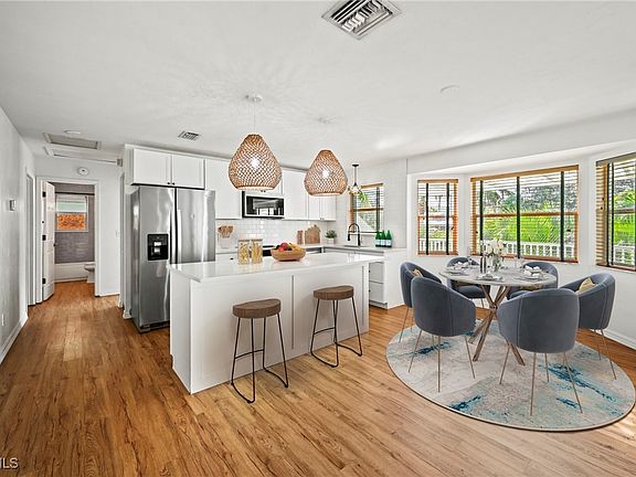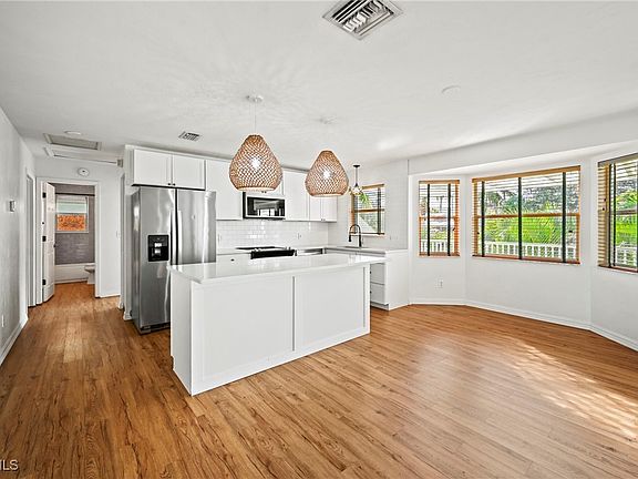 Located in the exclusive waterfront and Gulf-access community of Avion Place in Naples, this spacious five-bedroom, three-bath bayfront home blends Hamptons charm with coastal chic. Enjoy panoramic bay and river views from two levels of expansive lanais. The open floor plan features a modern kitchen with stainless steel appliances, quartz countertops, and generous living and dining areas ideal for entertaining. The primary suite offers water views, balcony access, and a spa-inspired bath. The lower level functions as a private guest suite with a bedroom, bath, and living area opening to a screened lanai and large landscaped yard. Conveniently located near downtown Naples, pristine beaches, and Greenway trails. No rental restrictions—ideal for full-time living, vacation, or investment.