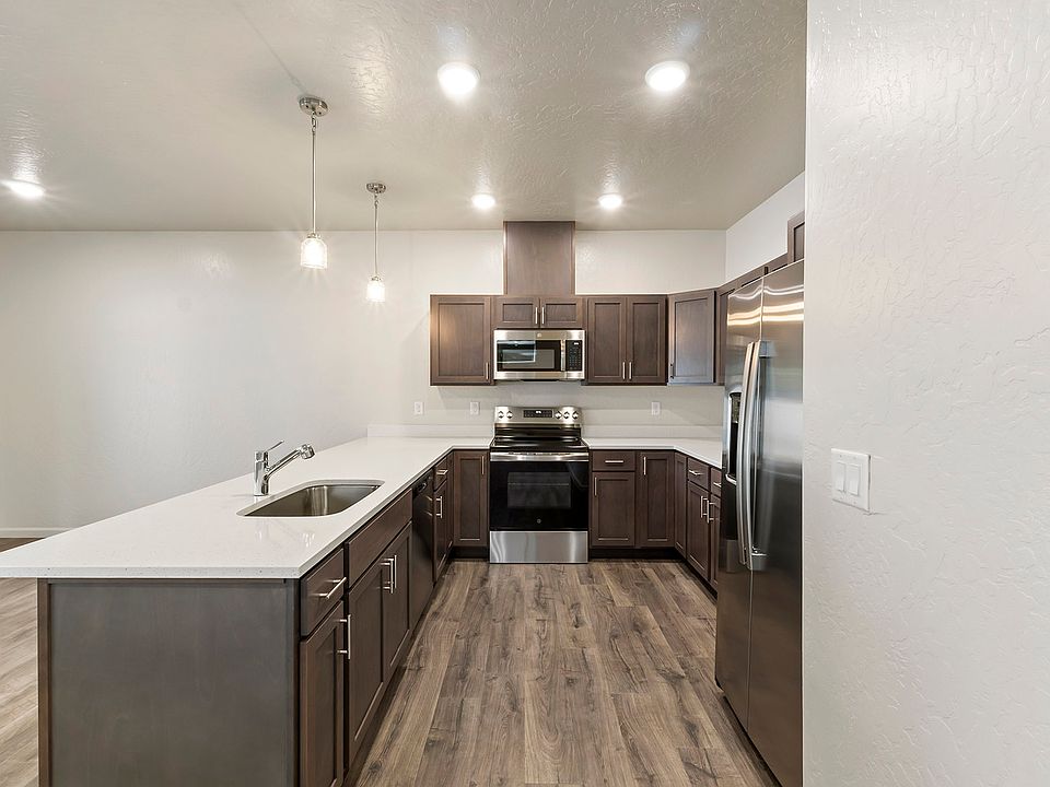 Modern high-end finishesIn-unit washer and dryerStainless steel appliance packageLandscaped open spaces