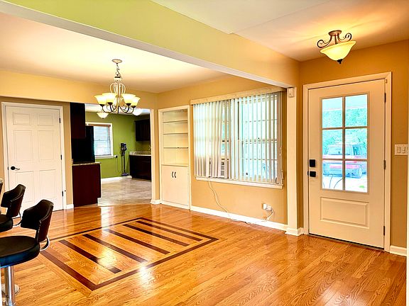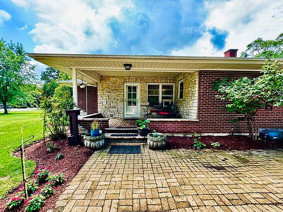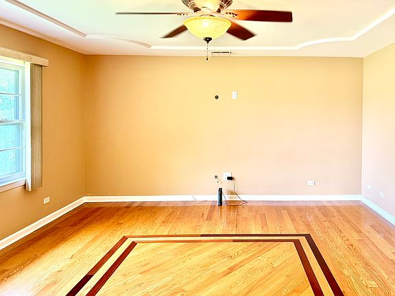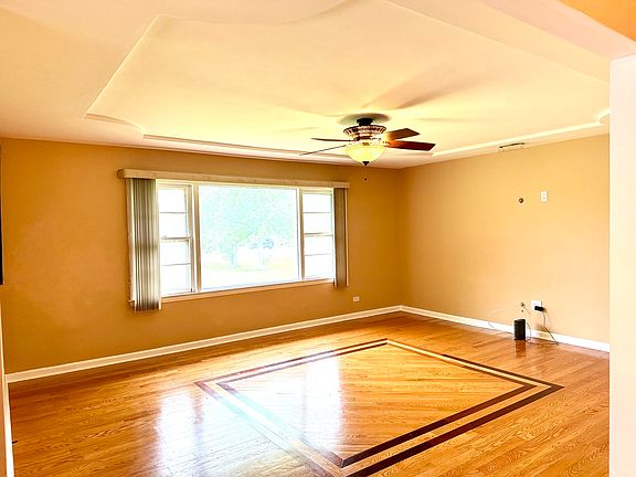MULTIPLE OFFERS RECEIVED, H&B DUE EOD 8/20 Welcome to this charming full brick ranch-style home, perfectly situated near I-88 and the Chicago Premium Outlets. With exciting developments on the horizon, including a new land-based Hollywood casino and hotel. As you arrive at this inviting property, you'll be greeted by a beautifully crafted white stone-covered front porch. Step inside to discover an open floor plan featuring a generously sized living room and formal dining area, complete with a built-in bar that's perfect for entertaining guests. The home is adorned with oak wood floors throughout, highlighted by cherry wood floor inlays. The spacious kitchen offers ample room for a small table and featuring custom cherry wood cabinets, granite counters and a convenient built-in desk. The main floor also includes an oversized master bedroom suite with a two-person jacuzzi tub, which could easily be converted into two separate bedrooms to suit your needs. The main floor bathroom is thoughtfully designed with a walk-in shower and a built-in vanity and a Hollywood mirror. The partially finished basement extends the living space, offering two additional bedrooms, a laundry closet, and a full bathroom with a walk-in shower. The open area previously featured a wet bar and kitchenette, providing a blank canvas for the new owners to add their personal touch. Step outside to the expansive backyard, where you'll find a huge patio partially covered with a pergola, a custom brick wall, and a bonfire pit that's just waiting to be rejuvenated. The backyard directly backs up to Church Road Park, offering convenient access to walking paths, baseball field, and park. For added convenience, the property includes a detached two-car garage with additional covered storage space behind, ideal for keeping your outdoor gear and tools organized