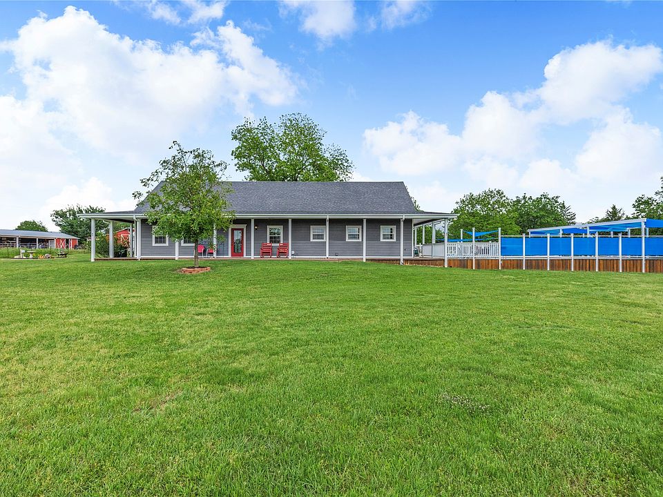 Welcome to your dream mini ranch home nestled on 12.84,ag exempt acres in the highly sought-after Miller Grove School District! This stunning property features 2607 sq ft in the main home with 3 spacious bedrooms and 2 well-appointed baths, designed with an open floor plan that seamlessly connects the living, dining, and kitchen areas. The large kitchen island is perfect for entertaining, while the butler's pantry provides additional storage and prep space.