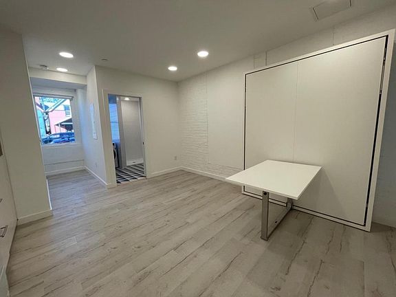 Studio includes Italian made multi-functional wall bed from Resource Furniture. Allows the studio to comfortably function as a living space and easily convert to a bedroom.