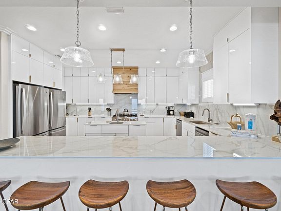 BEACHFRONT ESTATE!!! This residence is the epitome of coastal luxury, perfectly crafted for large gatherings, family retreats & unforgettable celebrations. Spanning three levels with 10 bedrooms & 11 full baths, this home offers endless comfort & breathtaking Gulf-front views. Step inside to find an open-concept living area with soaring ceilings & walls of glass that drench the interior in natural light while framing postcard-perfect views of the Gulf of Mexico. The gourmet kitchen is a showpiece with stainless steel appliances, marble countertops & an island with bar seating—designed to make cooking & entertaining for a crowd effortless. The home was built for fun & connection, offering a second living room & game area complete with a pool table, arcade games & a wet bar. Guests can spread out across five beachfront-facing bedrooms, each with private access to wide decks where the sound of the surf provides a soothing backdrop day & night. An elevator services every floor, ensuring that accessibility & convenience match the home's elegant design. Step outside to discover a true private resort. The raised heated pool sparkles under the sun, while the hot tub invites relaxation after a day on the sand. The expansive decks provide countless places to gather for dining, cocktails or simply soaking in the view. A private boardwalk leads directly to the sugar-white sand, making it easy to move seamlessly between poolside lounging & Gulf-front fun. Located in the peaceful East End of St. George Island, this estate offers unmatched access to the island's natural beauty. Here, mornings are best spent sipping coffee as dolphins swim by, afternoons are filled with paddleboarding or boating adventures & evenings bring dazzling sunsets over the horizon. The island life is rich with experiences—golf cart rides along quiet streets, fishing the bay or surf, exploring the nearby state park, or dining on fresh local seafood. Call for your private tour & LIVE THE BEACH LIFE!