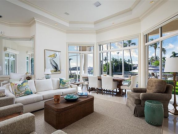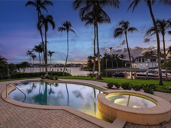 Experience unparalleled waterfront living with 102’ of frontage overlooking serene Galleon Cove, offering panoramic southwestern views and direct access to the Gulf with no bridges. This exceptional 4-bedroom+den, 4.5-bath Port Royal estate home emanates coastal luxury and elegance. Upon entering, you are greeted by a grand 17' arched entryway and a dramatic open floor plan with soaring tray ceilings and beautiful columns. Walls of glass and ample windows let in an abundance of natural light. Recent updates further elevating the property include a new dock and lift, significant landscaping improvements, and an enhanced pool area. This home is a showcase of sophistication and comfort and a testament to meticulous upkeep. Indulge in the ultimate waterfront lifestyle in one of Naples' most coveted locations with Port Royal Club eligibility.