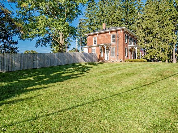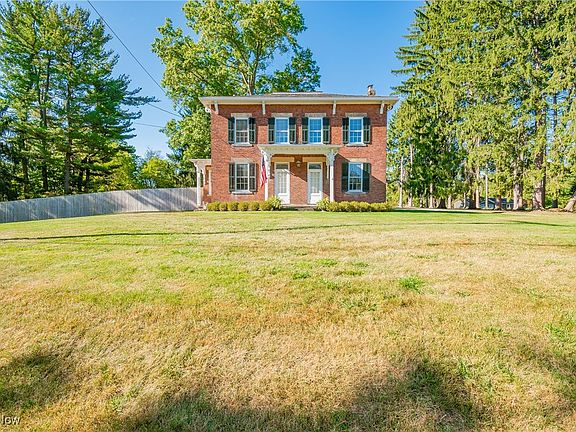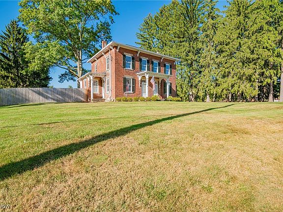 Step into this stunning 2-story brick Georgian Colonial, situated on nearly 3 acres in the City of Green, offering a perfect blend of historic character & modern updates. This 4-bed, 1.5-bath home has been thoughtfully remodeled to combine timeless charm w/ contemporary comforts. The redesigned kitchen (2017) provides modern conveniences & custom Hartville Hardware cabinetry. You will find beautifully preserved original woodwork throughout, including ornate trim, oversized baseboards & window sills, & an endearing corner cabinet, complemented by refinished original hardwood floors. The large windows w/ thick, wavy glass from the era fill the home w/ natural light. A unique, cozy stone corner fireplace w/ two large mantels offers a perfect focal point in the living area. 2 fully remodeled bathrooms showcase high-end finishes & attention to detail - one w/ an oversized shower, modern tile work, & quality fixtures, providing a spa-like ambiance. The 1st floor features a flex space that could be transformed into a laundry room, playroom, or add'l living area. An office w/ built-in shelves offers serene views of the backyard, ideal for those who WFH. An unfinished LL w/ high ceilings & a spacious attic provide excellent storage options or the potential for add'l finished living space. The walk-out leads directly to a newly designed patio (2024), perfect for entertaining or relaxing. Modern updates include (2017-2020): electric & plumbing systems, new well pump, HWT, water softener, whole-house filter, 4'' gutters w/ guards, & Kichler landscape lights. The backyard boasts nearly an acre of fenced-in space & a 1920s garage w/ ample storage for outdoor equipment or kayaks, with Nimisila Reservoir just minutes away. This home's character combined w/ modern updates make it one of a kind. Enjoy the privacy of country living while still being near local amenities & Green Local Schools. Don't miss the opportunity to call this beautiful property home-schedule your showing today!