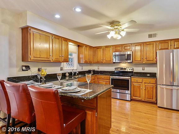 Richly appointed Halle brick townhome.Gleaming hardwoods. Gourmet kit w/ breakfast bar - designed to inspire the inner chef! Slider to private deck & back patio. Backs to parkland. Architectural enhancements thruout. Bump-outs add space & light! Private owner's suite. Full finished lower level w/ large rec room & fireplace.Great for entertaining! Spacious laundry and storage. Don't miss this one!