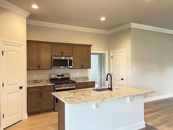 Located on a Corner Lot! This DOGWOOD IV A has an open floor plan with upgraded granite counters, stainless appliances with a gas range & more. Special plan feature include 3 bedrooms, 2 full bathrooms, kitchen island, 2 walk-in closets, garden tub & separate shower in primary suite, vinyl plank flooring in living room & all wet areas, smart connect Wi-Fi thermostat, framed mirrors in all bathrooms, crown molding & recessed lighting, tankless gas water heater, covered patio & so much more!