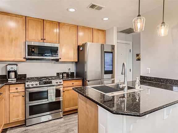 Stainless steel appliancesGranite countertopsGreat patioState-of-the-art touch screen refrigerator