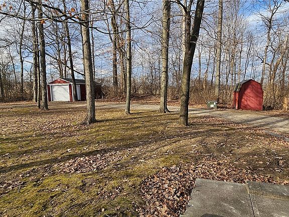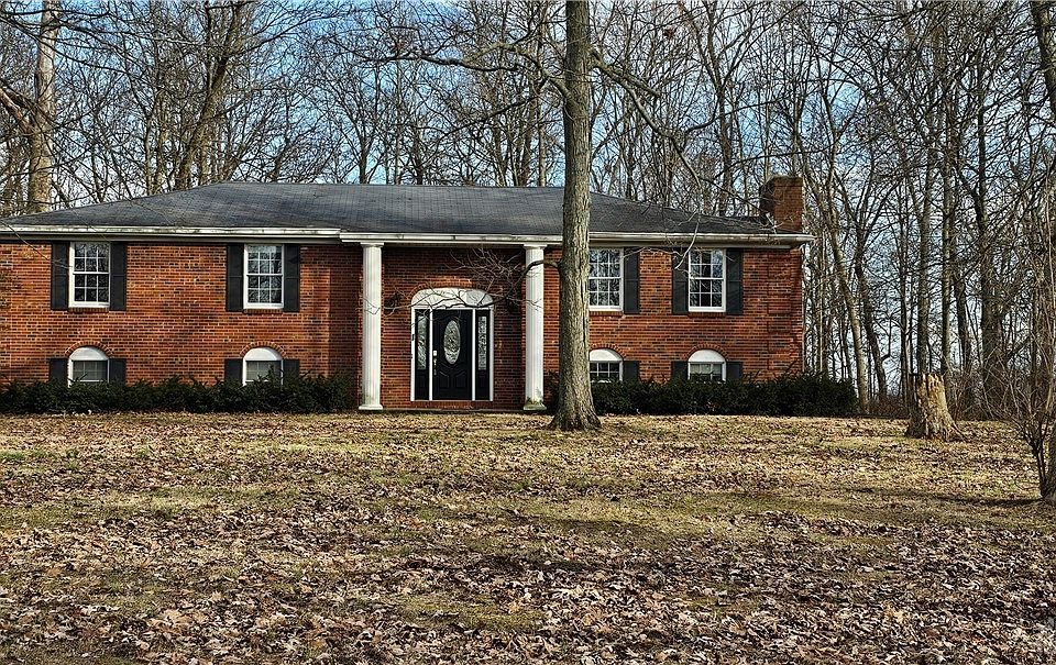 Full Brick home on a beautiful 4.885 (2 parcels) acre wooded lot. Ross School District. 3 Bedrooms, 2.5 baths. 2 car oversized side entry garage. Lower Level family room with fireplace and walk-out. Equipped kitchen with wood cabinets and pantry. When the home was built there was an opening left in kitchen floor (has railing up) for a future spiral staircase or elevator. Geothermal System. 2 Storage Sheds. Needs work, but the home has so much potential. Being Sold-As-Is.