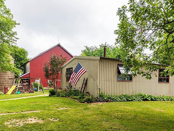 All ready for you to move in with your animals and enjoy the country! The pride of ownership and curb appeal on this property is stunning! There has been so much thought into the landscaping, variety of fruit trees and personal touches throughout and it is ready for you to enjoy. This beautiful home has 4-5 bedrooms plus a 4 season porch that is currently being used as an office, 2 baths, built-ins, pellet stove in dining room, cast iron soapstone wood fireplace in living room, most vinyl windows throughout. Main floor has 2 bedrooms and a full bath. 2nd floor has 3 rooms; one of them walks through to the other so it is only counted as 2 bedrooms. Walkout basement has 1359sqft with a large laundry room area, full bath, large pantry with shelves, family room area and more space for storage. The 2plus car garage is heated and has power. Solar panels are owned and has a Generac backup generator so your energy bills are lower and you don't have to worry about being without power. This property has alot of history; the trim throughout was milled from the property, 1,000 lp tank is owned.