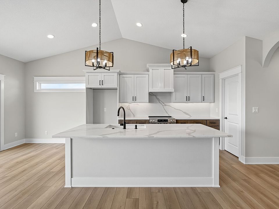 Unfinished basementArchitectural shinglesAmple natural lightOpen conceptQuartz countertopsUpgraded siding trim featuresPendant lighting