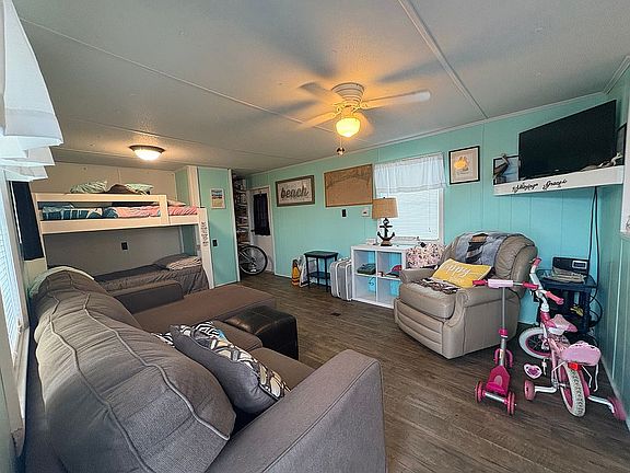 Spacious deckSound-side mobile homePrivate beach accessOutdoor shower capabilityConvenient built-in bunk bedLifetime metal roofCentral ac