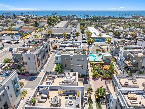 Welcome to this stunning 1,750 sqft, 3 bedrooms and 3.5 baths townhome located in the highly sought-after community of Vista Del Mar, Oceanside. This beautiful townhome boasts peekaboo ocean views from the primary suite, two small patios off the entryway, and kitchen. The private roof deck with its breathtaking 360-degree views of the ocean, surrounding city, and local mountains is ideal for entertaining, catching the sunset over the Pacific Ocean, or simply enjoying a fire under the stars. This extraordinary townhome community was constructed in 2018 and is the epitome of modern luxury living in a beachside community with common area amenities like a pool, jacuzzi spa, fire pit, and large BBQ for entertaining. The home features sleek sliding glass doors, an array of windows on each floor that radiate natural light, luxury vinyl flooring throughout, and each bedroom comes complete with its own full, private bathroom and walk-in closet. The first floor has a bedroom and full bathroom with a private first-floor patio surrounded by lush landscaping. On the second floor, the living room and kitchen have an open floor plan complimented by stainless steel appliances, a kitchen island, and a stylish decorative chandelier. The primary bedroom on the third floor has an expansive en-suite bathroom with double sinks, an elegant shower enclosure, and a private toilet area. Perfectly situated just minutes away from incredible dining, workout studios and gyms, coffee shops, breweries, and the Sprinter rail station which connects you to other mass transit throughout San Diego County and beyond, the beach with world-class surfing, Buccaneer Park, public tennis courts, Downtown Oceanside, Carlsbad Village, Goat Hill Golf Course and much more! Don't miss this once in lifetime opportunity!
