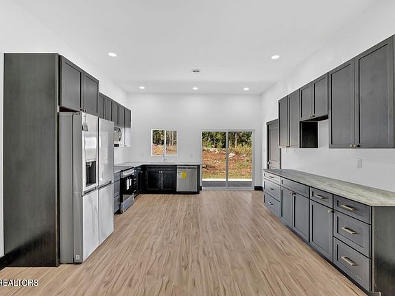 A brand-new construction situated on 5 acres in Dandridge, backing up to a creek. The location is highly convenient, being only 10 minutes from Exit 407 and 30 minutes from Knoxville. This has 5 Bedrooms and 2 Bathrooms. It includes numerous energy-saving features such as a17 SEER AC, spray foam insulation, a tankless water heater, double-pane energy-efficient windows, water-saving toilets, and more. The interior boasts 10-foot ceilings throughout, LG appliances, two sets of washers and dryers, 6-inch baseboards, recessed LED lighting, and custom trim. There is a 75x23 detached garage, a spacious front porch, and a concrete driveway, The garage could easily function as a barn, bring the horses, cows, or goats!! Come make this property your next home. Drone footage utilized; buyers are encouraged their own due diligence.