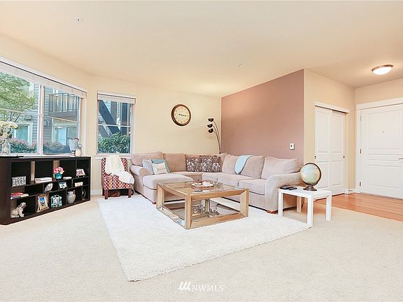 Move-in ready w/beautiful details! Open floor plan allows for sunlight to flow b/w living rm, kitchen, &dining rm. Kitchen feat hardwd floors, SS apps, granite counters, plenty cabinet space, & bar seating. Extra nook space by front door as office space or even cozy reading nook. Spacious master incl en-suite bath & sliding door access to private patio. Add bdr & full bath down the hall. Amenities incl access to athletic court & trails. Right next to I-405, Northshore schools, shopping&dining.