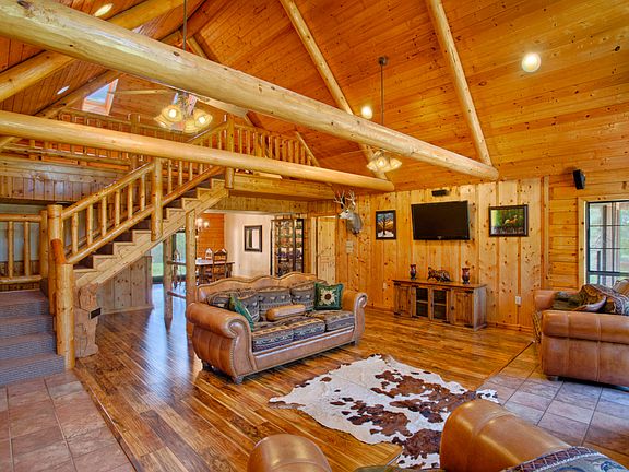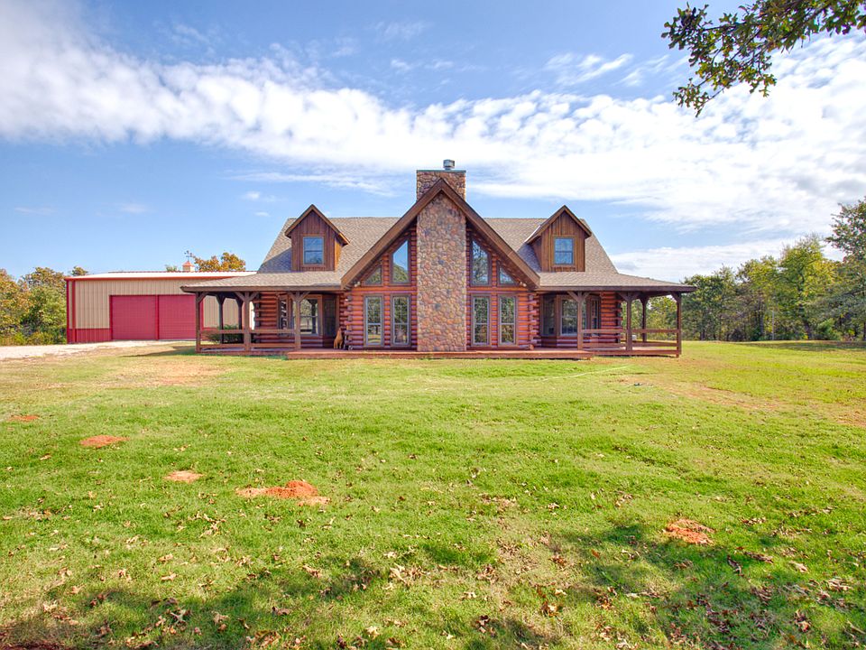 PRICE REDUCED!!! One of a kind home in an ideal location. Beautiful dream log home on 5 acres. Home has 21 ft. ceilings in great room and beautiful wood throughout. Large bedrooms with walk in closets, open loft, covered porches, pond, fruit trees, trails, plenty of room to explore. This lovely property is located at the end of a private road. Watch wildlife from your back door. Kitchen has large bar for entertaining, open floor plan, fireplace in huge living room. Spacious master bath has his and her walk in closets, jetted tub, roomy tiled walk in shower. Carport has two additional large storage rooms. 30x40 workshop is a mechanic's dream with auto lift and second story on north end. 30 minutes to Tinker AFB, 35 minutes to Norman, 45 minutes to Edmond.