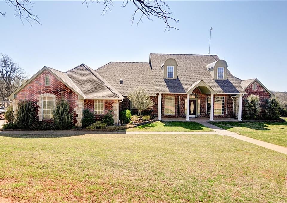 PRICE REDUCED! Beautiful country home on 12 wooded acres with great curb appeal, stocked pond & fishing dock! Horse ready with 4 stall barn with tack room, storage room, & shop area with 110 & 220. Home features an open floor plan & a BONUS area upstairs with 2 additional bedrooms & bath, framed but not finished. New hardwood floors in living, formal dining, hallway & study. Wonderful study with stained glass windows, built-in cabinets & desk, and storage closet. Master bathroom includes whirlpool tub, large shower, and his/her sinks. Additional features include sprinkler system, plenty of storage throughout home, new "E" windows on south side of home, one year old roof, storm cellar in master closet, built-in shelves in garage, covered patio with entrances from the master, breakfast & living room, security system, breakfast bar & pantry, and fireplace insert with blowers. Great access to the Turner Turnpike. Additional 11.84 acre lot available! Your incredible country home awaits!