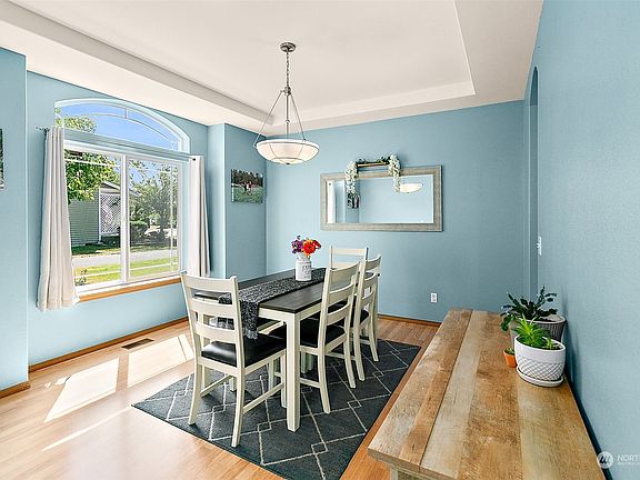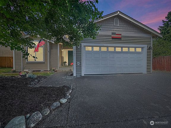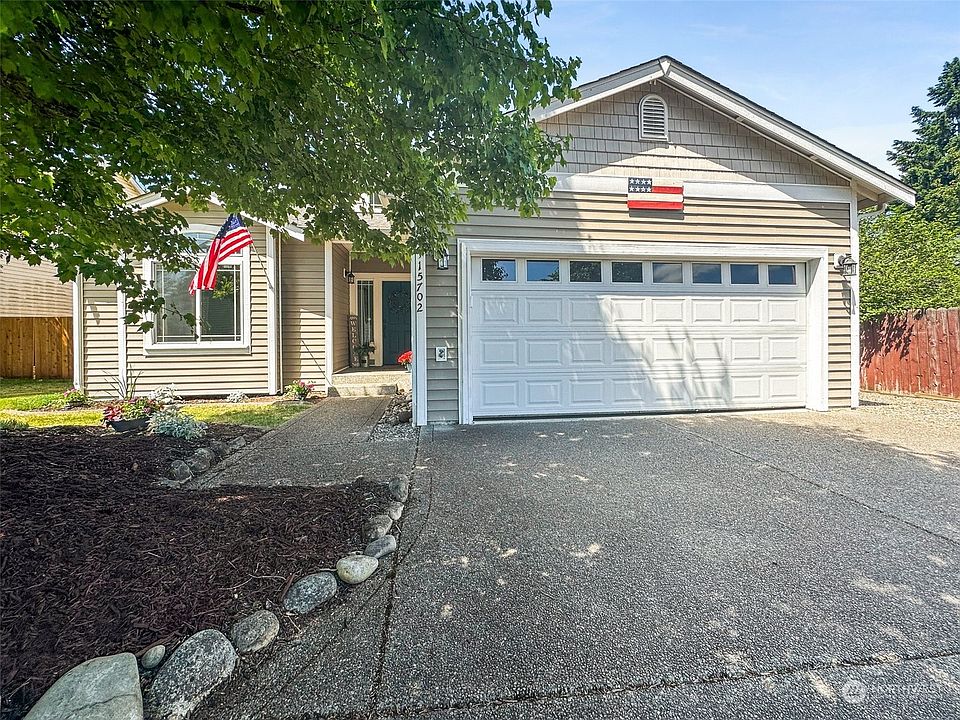 A Yelm Gem! Gas fireplace brings ambiance to Living rm separated from Kitchen by peninsular counter w/eating bar (all appliances stay!). Don't forget the walk-in pantry! Tray ceiling in Formal Dining. Over-sized window creates a light & bright Primary Suite, finished w/ walk-in closet & private bath w/walk-in shower, dual sinks, & soaking tub. Arched doorways; recessed lighting; ceiling fans. Two guest bdrms plus full guest bath. Heat pump with AC will keep you the perfect temperature all year long! Enjoy the outdoors on covered patio in fully fenced back yard, ready for your landscaping dreams to be brought to life. Two car garage plus driveway parking. Tucked away in the Yelm Terra neighborhood, close to parks, schools, & entertainment.