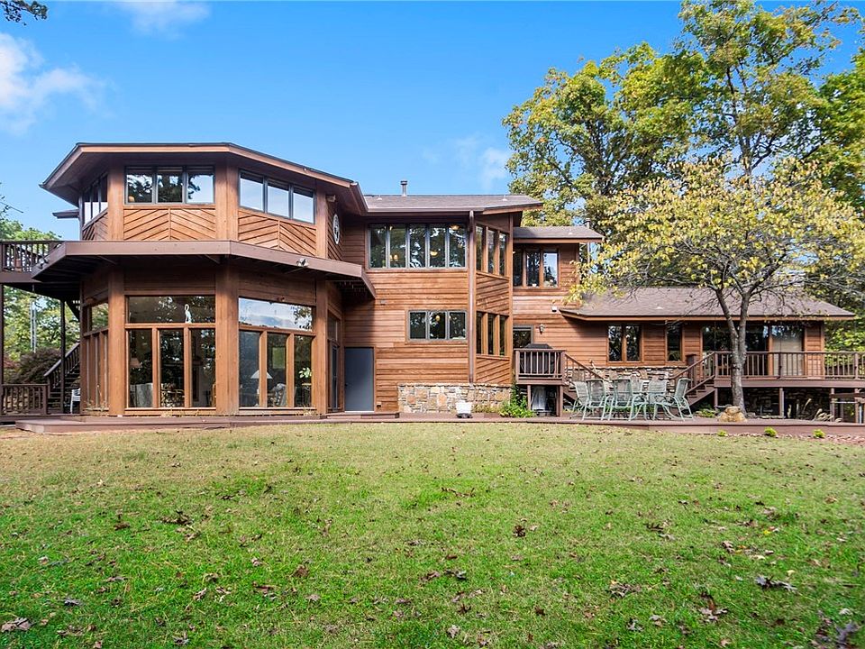 5 Beautiful acres so very close to Downtown Rogers and yet in every way a vacation feel. The Precures designed, and personally built this home starting in 1976 and structurally completed the home in 1988. This home design is inspired by the very best architects of our era. A labor of love in every nuance. The setting offers stunning natural beauty on all sides. A gentle walk to your "hard-to-find" enclosed private boat dock with boat lift and swim deck. The home itself has so many special places for reflection and to enjoy nature. Designed with separate quarters or "wing" for extended family or visitors. This is the place you have always dreamed of calling home.