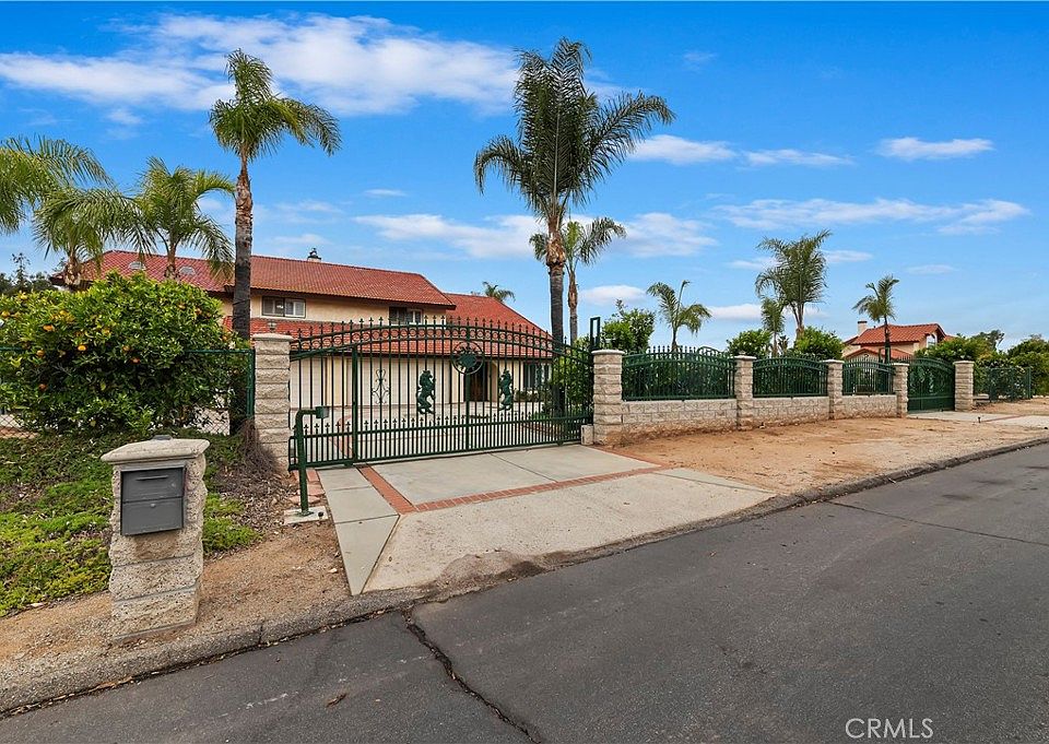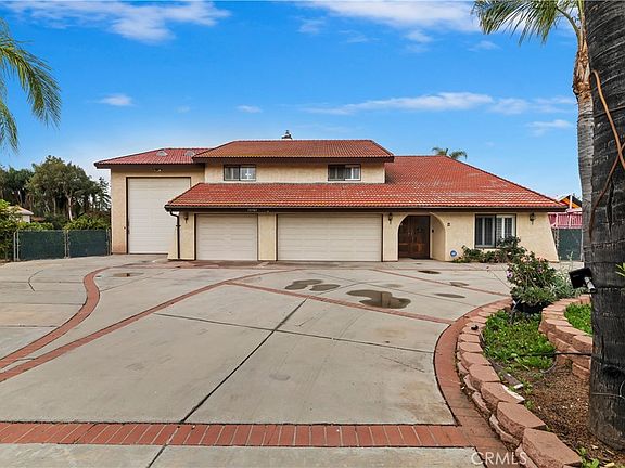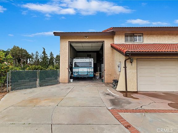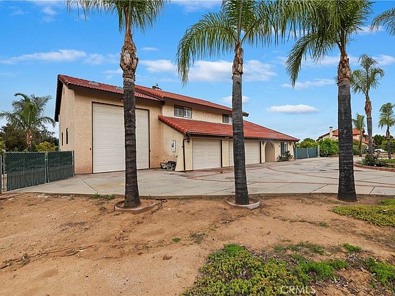 This residence sits on approx. 1 acre of flat land in the peaceful Woodcrest in Riverside. Total 6 bedrooms 4 bathrooms (1 bedroom and full bathroom downstairs). Newer interior paint, Newer flooring upstairs, Upgraded kitchen cabinet, granite counter, kitchen island open to the family room. Cozy fireplaces are located in the family room and primary bedroom. Beautiful window shutters throughout the house. Lots of ceiling fans. Step outside to a large patio. You can enjoy the gorgeous view of the orchard from the balcony out of the primary bedroom. Spacious 3 car garage + Great RV garage - the size of 20 feet x 40 feet x 8 panel heights. Custom made Automatic front gate to access the property. Circular driveway. There are oranges, dates, and dragon trees in a huge lot. Potential of an ADU. Lower Property Tax (no mello roos/CFD), No HOA, Unique and great property has many potentials! Must See!!!