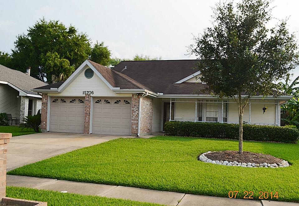 Looking for a great place to call home? Then check out this 3 bedroom 2 bath home. Near I-45, Nasa & UH Clear Lake. It has big front porch, big patio & shed in fenced yard. Comm. pool/park are nearby. Has open floor plan w/high ceilings, brick fireplace & plant ledge in family room. Large kitchen & breakfast w/lots of cabinet & counter space, tile floors. Master suite has shower + soaker tub & big closet. Hurry this one will go quickly!