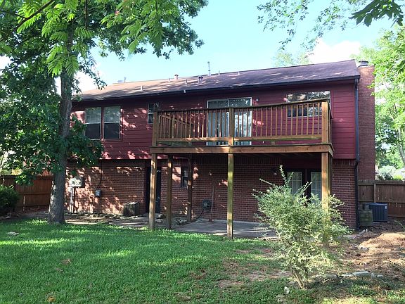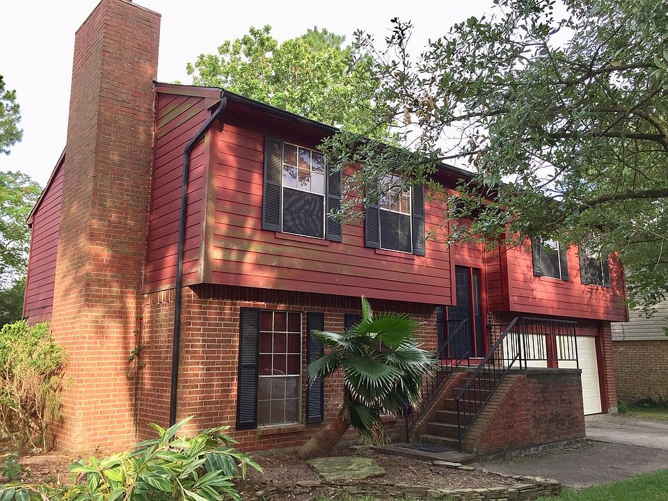 This is a spacious two-story home with tall crepe myrtle, pine and oak trees. Enter the front door and go downstairs where there is a bricked den, wet bar, and master bedroom and bath. Or go upstairs and enter a spacious living room with lots of windows and one wall depicting NYC at night. Upstairs also has the kitchen, dining room, two large bedrooms and a bath. A large deck accessed from the dining room overlooks the large shady backyard. The home has a number of improvements: new AC, additional ceiling insulation, new refrigerator, new dishwasher, new carpet, and new floors for the kitchen and dining room (note at the time of writing, the old refrigerator, the old flooring and old carpet is shown in the photos). It's a great house to raise kids in. Schools are excellent and the community pool is a block away. Regarding pets... let's discuss. Owner pays water/sewer/trash. Tenant pays other utilities