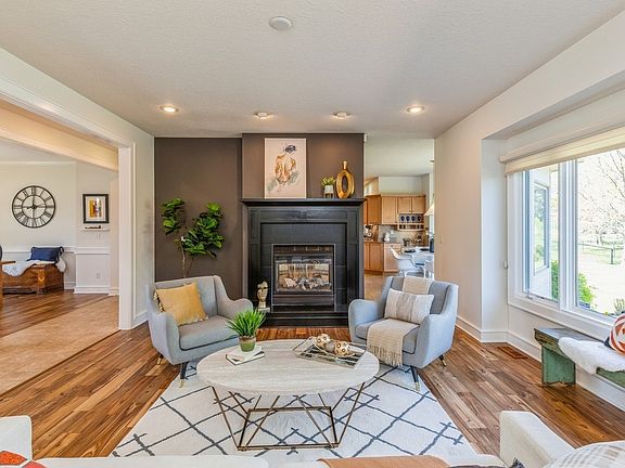 No cookie cutter home here! Pristine condition, soft contemporary styling, versatile floor plan and tasteful updates. Wonderful curb appeal and inviting front porch. 5 beds, 4 baths, 3,142 sq' fin. Open Entryway. Fantastic natural light throughout. High end window treatments. Maple kitchen w/newer high end appliances, waterfall island w/stunning Cambria quartz, pantry w/rollouts, spacious eat-in area and double sided gas fireplace. New 3/4" hardwood floors. Fresh interior paint including trim.