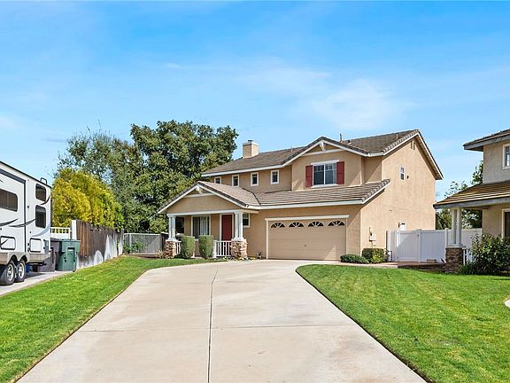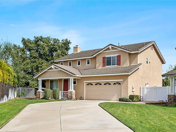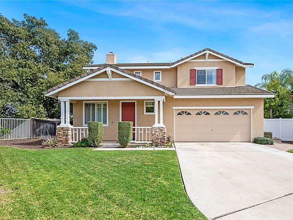 Beautiful two story home located in a small quaint cul-de-sac in the highly sought after Sycamore Highlands area of Riverside. Builder is DR Horton, built in 1999. This home has so much attention to detail. Wonderful views, original owner. First time on the market. 1,774 square feet, offering 3 bedrooms and 2 ¾ baths. All bedrooms are located upstairs. Primary has quartzite countertops and a separate stall shower and soaking tub. Spacious walk-in closet. Second bathroom has a shower/tub combo. Downstairs has a powder room with a shower. Wood floors, new carpet, ceiling fans, newer 2017 central heat and air unit. Cozy fireplace. Home is custom painted. Some mirrored wardrobe doors. The security system will remain. Cooks’ kitchen with nice tile counters. New stove, newer Kitchenaide dishwasher. The newer refrigerator is negotiable. Neat kitchen island. Indoor upstairs laundry in its own room. Washer & gas dryer are negotiable. Paradise large backyard, flat usable 10,454 square foot lot!!! Complete with designer running water fountain with stream, alumiwood patio cover with ceiling fan. Bull BBQ with beverage cooler. Nice classy astro turf. Some new vinyl fences. 3 car tandem garage with metal storage racks and garage door opener. Low taxes and no association. Close to schools, medical, shopping, parks and freeway.