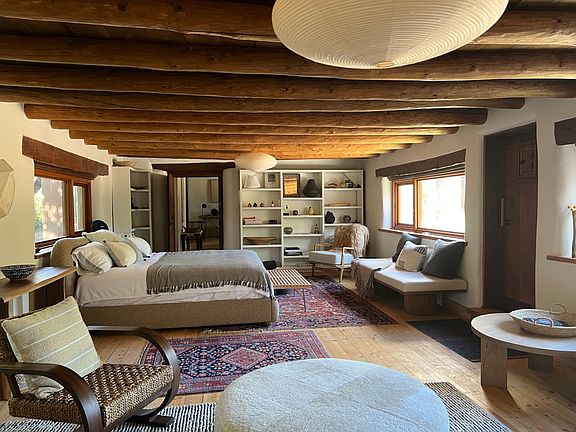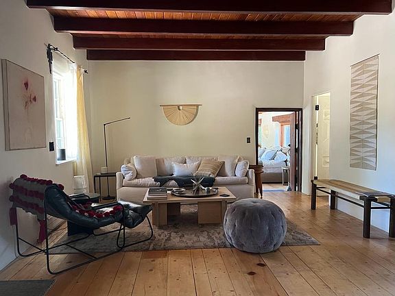 Magical Tesuque! Newly renovated and beautifully furnished 1890's Spanish ranch. With a touch of Georgia O'Keefe, the new kitchen and new appliances allow for great entertaining. Newly appointed bathroom, Studio and also a wood burning stove. The rental is 1/2 of the ranch house and is located on a two-acre garden property in the heart of Tesuque. The property has a beautiful garden on-site and the compound is fully enclosed and gated for privacy. Shared with one other tenant the total SF of the house is over 4,200 SF. The rental and studio has an ample 2,300 SF with hardwood floors and tiled kitchen.