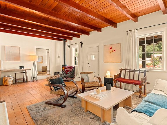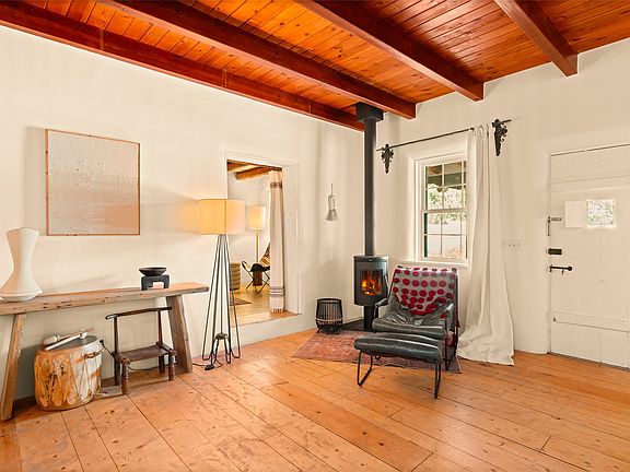 Recently updated with a rich old world charm and history (formerly El Cuervito Ranch), this private and gated compound is situated in the lush village of Tesuque just steps away from El Nido Restaurant, the famed Tesuque Village Market and the world-renowned Santa Fe Opera. Consisting of 0.754 beautifully manicured acres, the entry courtyard has stone pathways and seasonal greenery, creating a warm and inviting playground for the senses. The property consists of a main house (two bedrooms/two baths), guesthouse (one bedroom/one bath), and three separate studio spaces all served by both a shared well and the Tesuque Community Water System. The interiors of these adobe and frame constructed homes are washed with light and have vast tree-lined views in every direction. Formal living spaces open out onto a plethora of indoor/outdoor entertaining options with sitting portals weaving the beauty of nature into the living environment. There is a nice separation of space between the structures, but the property also offers many uses as it is zoned Rural Commercial, allowing many business options for the homeowner. Classic in style, this sensuous property has been fitted with mini-split heating and A/C, plastered walls, wood floors, vigas and beams, completely walled and tucked away in one of Santa Fe’s finest idyllic locales. The adjacent Lot 2 (0.816 acre) parcel is also available for sale by the owner in conjunction with Lot 1 for $2,550,000 - for both lots. Surface irrigation water rights convey with Lot 2.