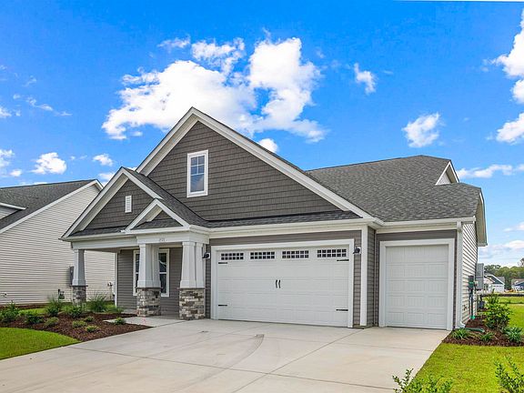 From the Cottages at Bridgewater comes the Sanddollar, a one story model that is home to both luxury and everyday conveniences. With up to 2,390 square feet of living space, this model features three bedrooms, two bathrooms, and plenty of options. From a picture-perfect covered front porch, walk through the foyer and past two bedrooms with large closets, and one full bathroom. Easily free your hands or unload your car using the drop zone area and adjacent laundry room, located just inside from the two-car garage. For further convenience, is the added soaking sink in the laundry room.