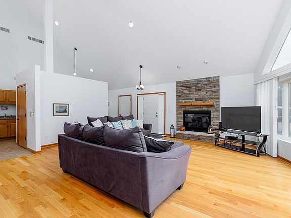 LAKE VIEW CHALET WITH SOARING FLOOR TO CEILING WINDOWS. LARGE DECK SURROUNDS THE FRONT OF THE HOUSE TO ENTERTAIN GUESTS WITH A RESORT ATMOSPHERE. 3 BEDROOMS, 3 BATH OPEN FLOOR PLAN WITH WALK OUT FINISHED LOWER LEVEL. A 2.5 CAR GARAGE AND A TRIPLE WIDE ASHPLAT DRIVEWAY WITH LOVELY LANDSCAPING. A WALL OF WINDOWS FROM FLOOR TO CEILING AND ALSO HAS CATHEDERAL CEILINGS IN THE LIVING ROOM AND DINING AREA WITH A GAS FIREPLACE. THE KITCHEN HAS A NEWER REFRIGERATOR AND INCLUDES ALL THE APPLIANCES, THE WASHER AND DRYER ARE ALSO INCLUDED THE LOWER LEVEL HAS A FAMILY ROOM AND THE THIRD BEDROOM HAS TWO QUEEN-SIZE BEDS WITH A LARGE WALK IN CLOSET. A FULL BATH IS RIGHT NEXT TO THE BEDROOM. THE BACK YARD HAS A PATIO FOR RELAXING. THE FURNACE IS LOCATED IN THE LOWER LEVEL WITH THE WATER HEATER AND THE WATER SOFTNER AND A RADON MITIGATION SYSTEM INSTALLED IN 2016. A BAR IS IN THE LARGE LOWER LEVEL FAMILY ROOM WITH DOUBLE SLIDING DOORS TO A LOVELY PATIO TO VIEW THE PROFESSIONAL LANDSCAPING. THE 2.5 CAR ATTACHED GARAGE HAS ROOM FOR BOATS AND THE DRIVEWAY IS TRIPLE WIDE AND HAS A SPACE WHICH WOULD BE PERFCT FOR BOAT PARKING. JUST BRING YOUR CLOTHES AND COME AND ENJOY LAKE SUMMERSET IN THIS LOVELY HOME. MOST FURNITURE, ALL BEDS AND SHEETS, 2 TV’S AND KITCHEN ITEMS INCLUDED EXCEPT FOR PERSONAL FAVORITES, QUICK POSSESSION. SECURITY CAMERAS INSIDE ARE ON DURING SHOWINGS.