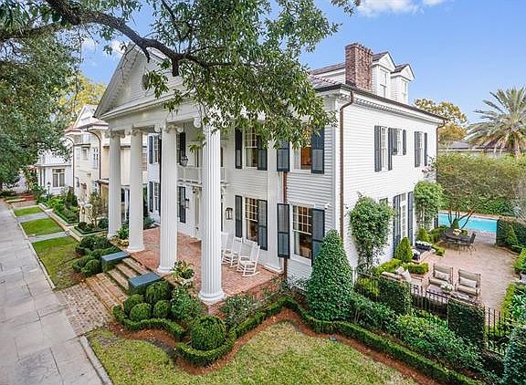 Rare opportunity to live on Audubon Park! Neoclassical Revival Center Hall w/ wide front porch overlooking majestic oaks & park activity. Large formal living & dining rooms, handsome study w/bookcases. Gourmet eat-in kitchen opens to den w/ French doors to pool. Michael Carbine renovations 2011. So many architectural details & amenities. 2nd floor 4 bdr/3baths. 3rd floor bedroom, bath, game room, office alcove. Private walled Michael McClung landscaped terrace & garden. Addl. 362sf guest house & garage.