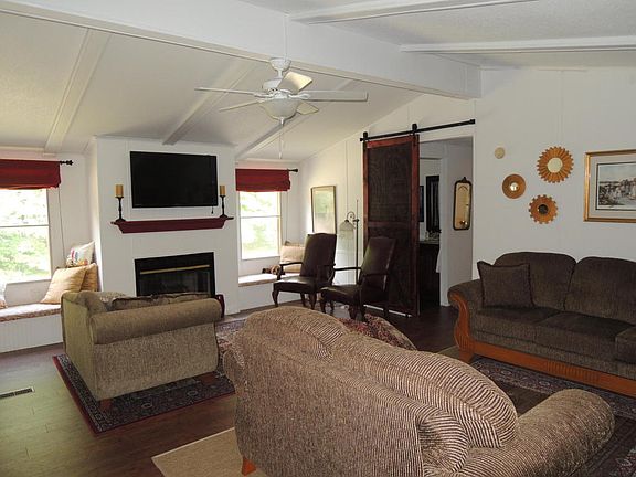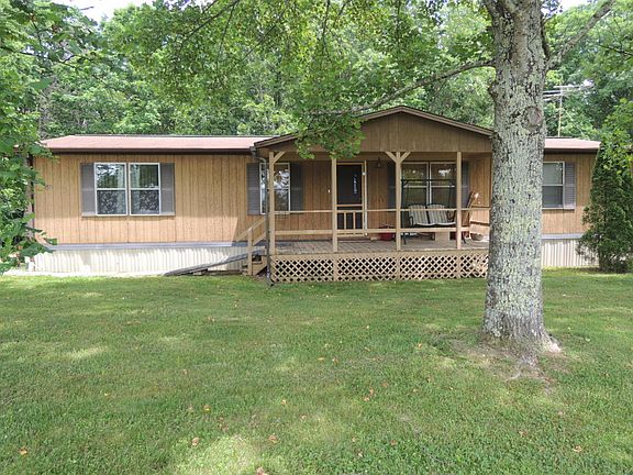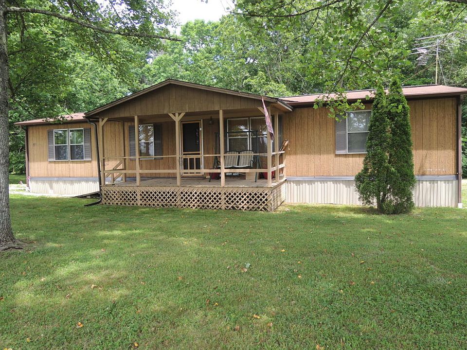 Cute & quaint double wide on beautiful level acreage with grape vines, fruit trees & plenty of room for a garden, dotted with mature hardwoods. Features 3 bedroom 2 bath gas fireplace, split floor plan & recently updated gas logs, washer, dryer, roof, hot water heater & so much more. Home comes mostly furnished. So bring your personal belonging to make this your own paradise today. Storage building, covered porches to enjoy the outdoors and the sunsets in the evenings.