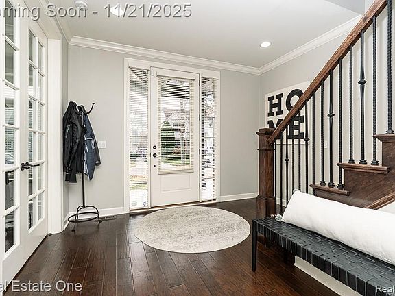 DON’T MAKE A MOVE WITHOUT a visit to this incredible home in a highly desirable Birmingham neighborhood. The moment you step inside, you’re welcomed by an open foyer, engineered wide-plank wood floors, custom wall trim, crown moldings, and French doors leading to the library/study—flexible as a 4th bedroom. The main level features a bright open floor plan with a spacious family room with gas fireplace and built-in speakers, and a gourmet kitchen offering an oversized barstool island, tile backsplash, soft-close cabinetry, stainless steel appliances (included); dbl ovens, gas 5 burner cooktop, large refrigerator with water/ice, huge walk-in pantry, and large dining area. Convenient mud room with organizers. Two doors lead to the fenced backyard with a composite deck and overhead lighting, ideal for everyday use and gatherings. Upstairs includes a convenient 2nd-floor laundry room (washer/dryer included), a primary suite offers a tray ceiling, recessed lighting, ceiling fan, walk-in closet, and ensuite bath with his-n-hers sinks, deep soaker tub, separate shower w/dual rainfall shower heads, and private water closet. Two additional bedrooms share a full bath. The lower level offers a carpeted space with extra-tall ceilings, egress window, radon mitigation system, glass block windows, refrigerator, new sump pump 2024 with water backup, and plumbing for a future bath—ready for finishing. Additional features include Nest thermostat, Ring doorbell, security system, new furnace 2024 and high-efficiency water heater. Exterior showcases fieldstone and wood siding/trim, covered porch, 2-car garage with attic access, lawn irrigation. Int. paint 2024, ext. paint 2025, 2 light fixtures 2023 (kitchen & one bedroom). Close proximity to parks, restaurants, and shopping. Award-winning Birmingham Schools.