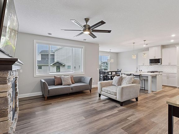 Sunlight floods this modern and like-new townhome, perfectly positioned on a spacious, corner lot with tons of yard space. Designed for everyday comfort and entertaining alike, the open concept features a stunning stone surround gas fireplace in the living room, next a bright white kitchen that offers timeless appeal with a center island, new range and microwave, and seamless flow into a spacious informal dining area with access to a patio in back. Plus, a main-level office with a sliding barn door provides a private, stylish workspace, and a convenient half bath and mudroom off the two-car attached garage add thoughtful functionality. Upstairs, you'll find three generously sized bedrooms, each with walk-in closets and en suite baths, including the primary suite that’s been beautifully updated with a tiled floor and shower with glass door, not to mention a new sliding door over the tub/shower in the Jack & Jill bath with desirable private vanities. And just steps from all bedrooms, a convenient laundry room makes daily routines effortless, while brand new carpet throughout enhances the fresh, move-in-ready feel. Located on a quiet, dead-end street, this exceptional property is just minutes from downtown Hudson, the St. Croix River, I-94, and every imaginable amenity.