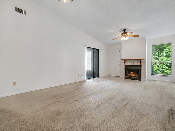 Located in WoodRidge Condominiums, this one story unit offers convenience to universities, shopping and restaurants. The home features a spacious living/dining area with vaulted ceilings and a cozy wood burning fireplace, an inside laundry room, and a primary bedrooms with a walk in closet. Enjoy relaxing on the screened porch or taking advantage of the community pool.