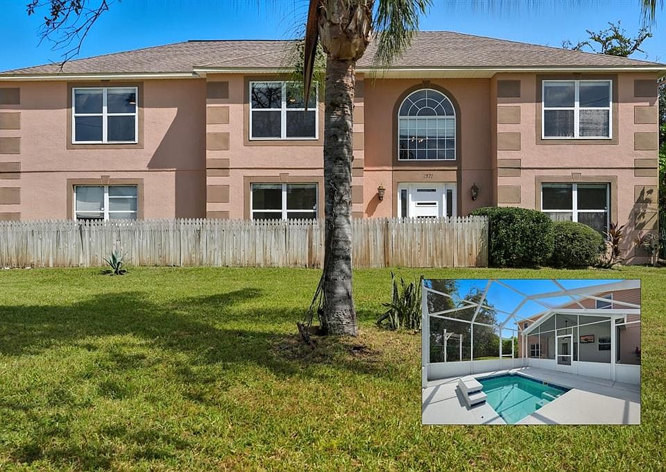 Room for everyone in this spacious two-story home! Perfectly positioned on an oversized corner lot, it offers comfort, functionality, and value at a price that won’t break the bank.Howl Step into a bright, airy foyer and explore all the possibilities. The first floor features a versatile office or flex room—ideal for homeschooling or remote work—a formal dining room, a well-appointed kitchen with butcher block counters, and an oversized family room perfect for gatherings. A convenient half bath and plenty of storage complete the downstairs layout. French doors off the kitchen lead to a screened lanai overlooking a refreshing in-ground pool. The expansive, fully fenced yard provides ample space for pets, gardens, or a playground. Upstairs, you’ll find a generous loft that can serve as a second living area, playroom, or game room. The spacious primary suite includes two walk-in closets, double vanity, jetted tub, and a linen closet. Four additional large guest bedrooms, a full bath, and an upstairs laundry closet add everyday convenience. Car lovers and hobbyists will appreciate the 3-car garage and extra-wide driveway, offering plenty of space for vehicles, tools, and toys. With nearly 3,000 square feet of living space, this home offers the perfect blend of comfort and versatility for today’s lifestyle. Don’t miss your chance to make it yours—schedule your private showing today!