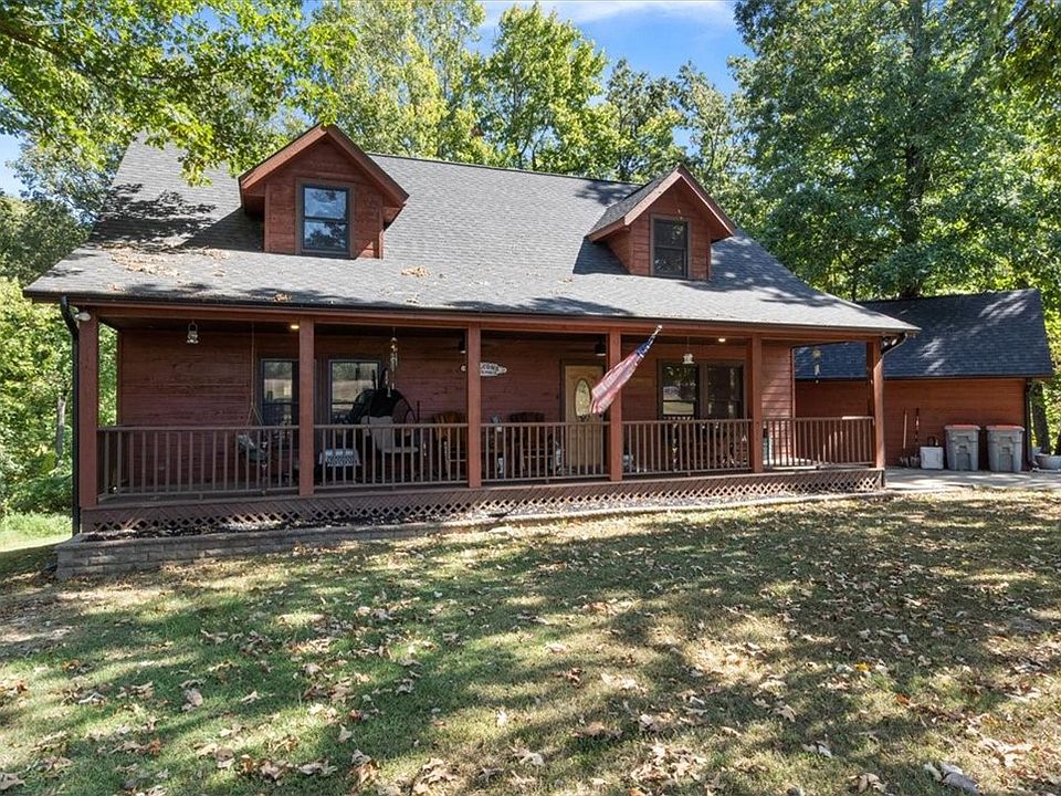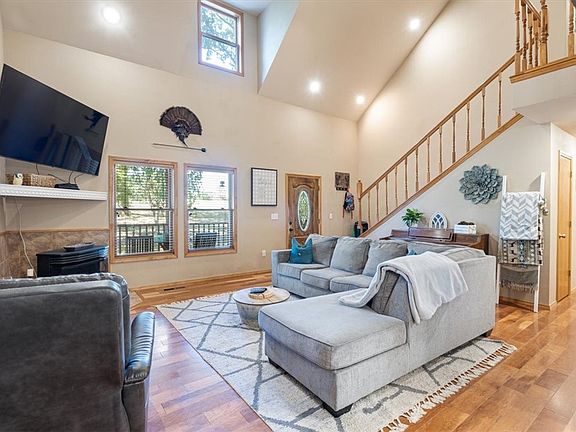 Rogers schools! This beautiful home sits on 5 acres, private, level & very useable with pasture in the front & woods in the back! Perfect location if you're looking for a property that is out of town & private but still has EASY access to everything! Downtown Rogers is 20 minutes, Downtown Bentonville is 30 minutes, Roaring River is 20 minutes, & very close to Beaver Lake! The huge covered front porch runs the length of the home. Inside the living room has a propane fireplace & 2 story ceilings that open to the loft upstairs! The kitchen has lots of cabinets & plenty of counter space with a breakfast bar for extra seating. Main level master bedroom is huge & has a private bath with access to the back deck, perfect if you want a hot tub on the deck! Downstairs also has a half bath & separate laundry room. The upstairs has 2 more bedrooms, a full bath plus a loft that is perfect for a second living area or office! Huge back deck! Updates include new roof & gutters(2023);new HVAC, deck & home stain, appliances (2022)!