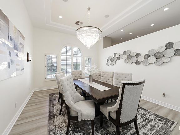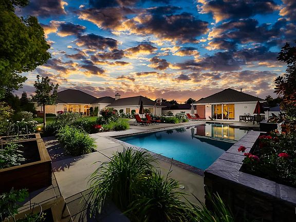 This stunning one-of-a-kind home is completely turn-key and in impeccable condition with 4,583 sq. ft. of luxury living. Enter through double doors to soaring tray ceilings, elegant dcor, and a sense of refined style. Features include formal living and dining rooms, an office with high-end built-ins, two cozy fireplaces, plantation shutters, newer flooring, surround sound, and PAID solar. The chef's kitchen offers granite counters, stainless appliances, and abundant cabinetry. The spacious primary suite has an executive closet and jetted tub. The backyard is nearly 0.6 acres with a gorgeous pool, sheer descent waterfalls, built-in BBQ, basketball court, and large covered patio. The guest house includes one bedroom and one bath, equally impressive in quality. A four-car garage with built-in cabinets, insulated doors, RV parking, automatic security gate, and block walls complete this exceptional property.
