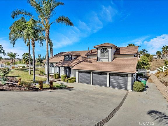 BACK ON THE MARKET**** Welcome to this beautifully remodeled 5-bedroom, 3-bathroom home, offering nearly 3,200 sq. ft. of elegant living space on a sunset view lot in Riverside’s desirable Woodcrest neighborhood. Nestled on a peaceful cul-de-sac, this private, fully fenced property boasts breathtaking views, modern upgrades, and impeccable style. Exterior highlights include fresh landscaping, brick-inlaid walkways, sleek vinyl fencing, contemporary garage doors, and chic two-tone interior and exterior paint. Step inside through the grand double-door entry to a foyer with soaring ceilings and a striking wrought iron staircase. The bright, open layout features upgraded engineered hardwood floors, plush carpeting, recessed lighting, and a gourmet kitchen with shaker cabinets, a wave tile backsplash, and premium KitchenAid appliances. Relax by wood-burning fireplaces in the family and living rooms or retreat to the main-level bedroom and bath. Upstairs, the luxurious master suite offers a new balcony, freestanding tub, and tiled shower. Complete with dual A/C, sunset views, and thoughtful upgrades throughout, this home is a must-see!